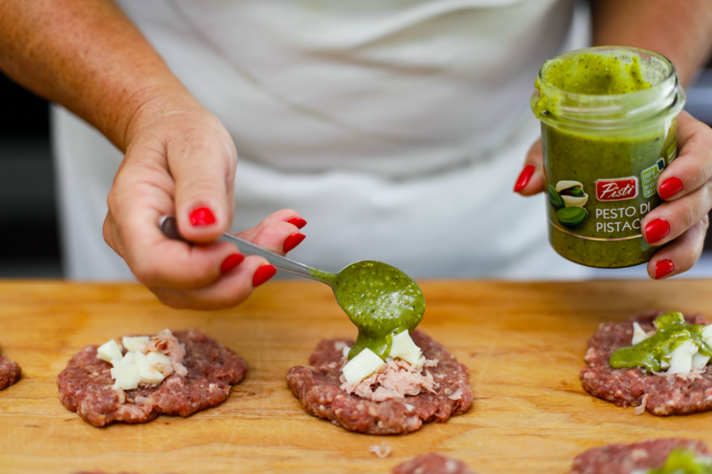 Aggiungere un cucchiaino di pesto di Pistazie.