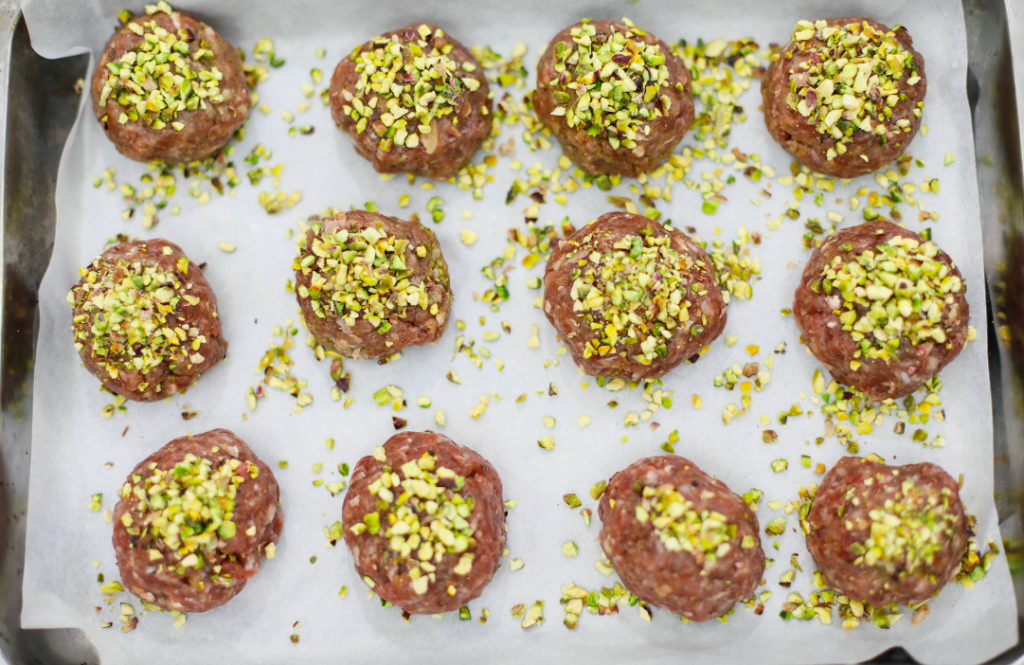 Ricomporre le palline, disporle su carta da forno e spolverare con la granella. Infornare in forno ventilato preriscaldato a 220° per circa 20/ 25 minuti.