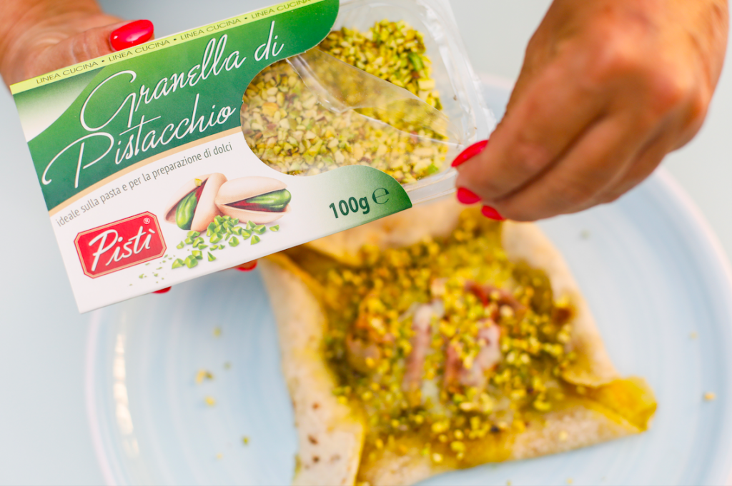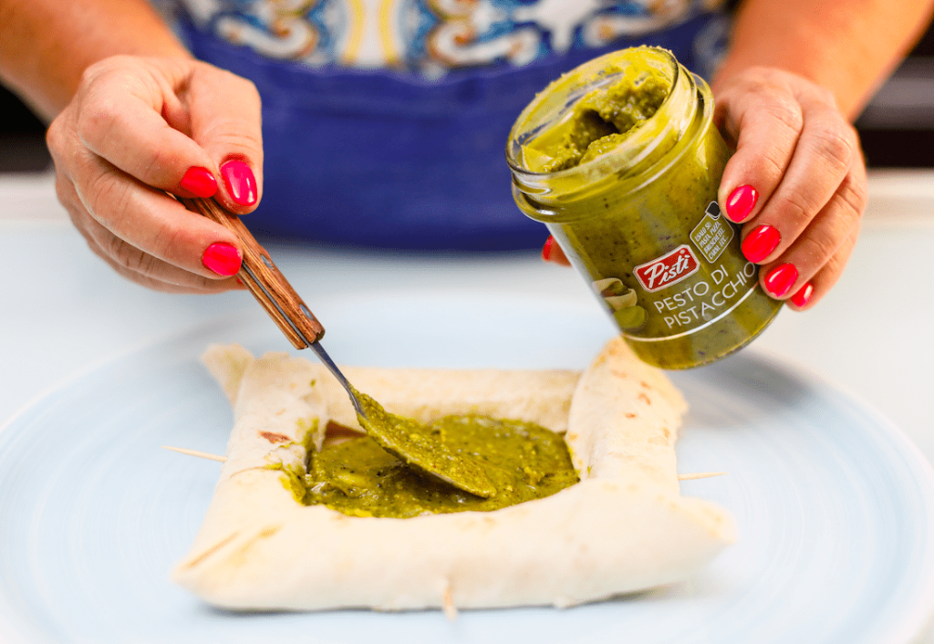Aggiungete il pesto di pistacchio Pistí, una fetta di